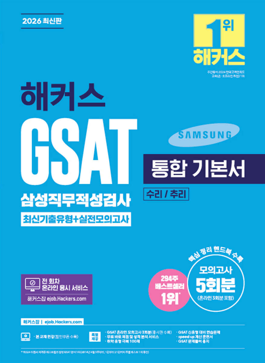 2026 해커스 GSAT 삼성직무적성검사 통합 기본서 최신기출유형+실전모의고사 (수리/추리)